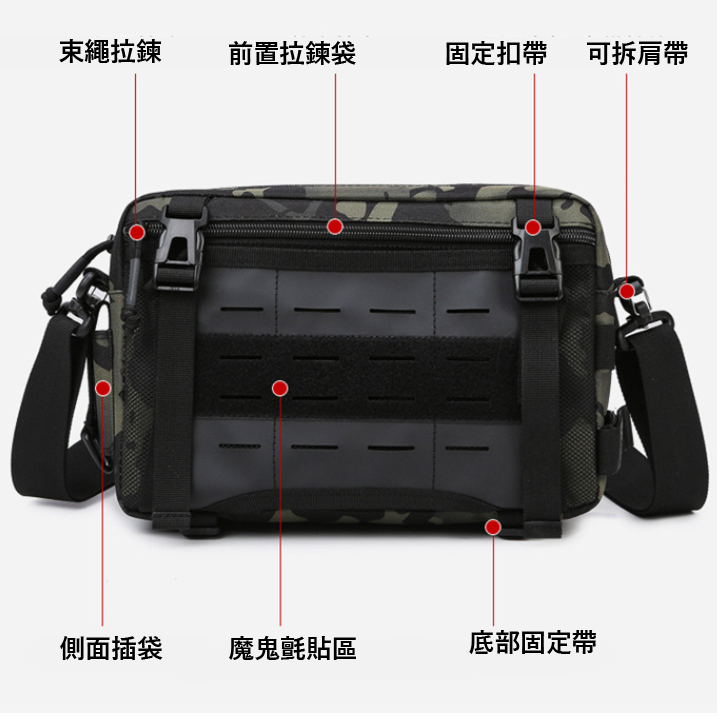 戰術風格,多夾層設計,滿足你多樣的收納需求,魔鬼氈黏貼區可自訂造型