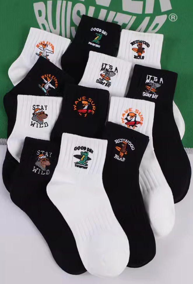 各種衝浪生物 刺繡超精緻 中筒襪~