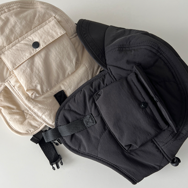 多口袋設計:帽耳側邊搭配翻蓋式小口袋,提供實用收納功能,適合存放小物。
